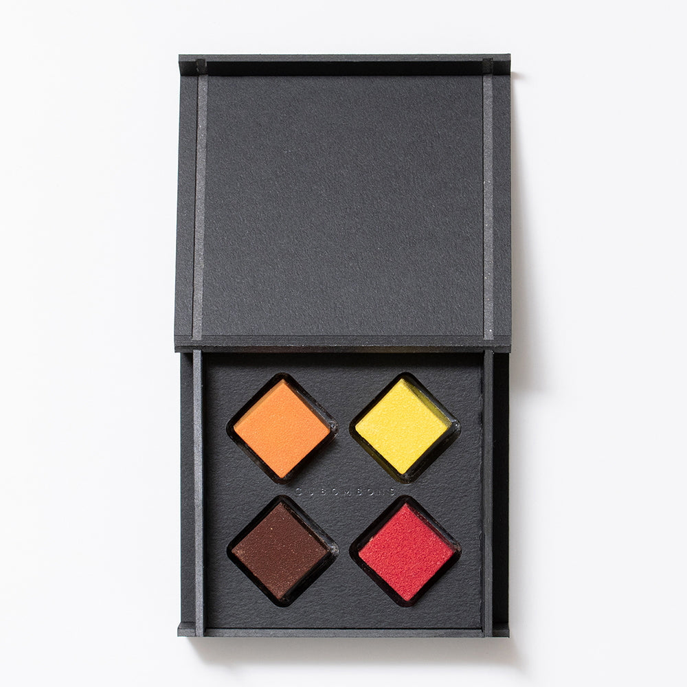 ■果実の美味しさを閉じ込めた、キューブ型のボンボンショコラ4種セット。バナナとパッションフルーツ、リンゴとシナモン、柚子、ラズベリーとバジルなど、他にはないユニークなフレーバーです。 口どけなめらかなフルーツのガナッシュと、チョコレートの奥深い味わいをお楽しみいただけます。 洗練されたデザインは、大切な方への贈り物や、ご自分へのご褒美にもぴったりです。