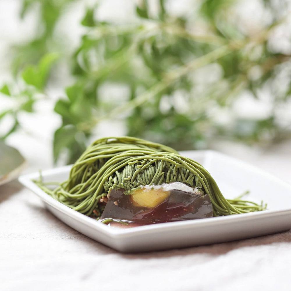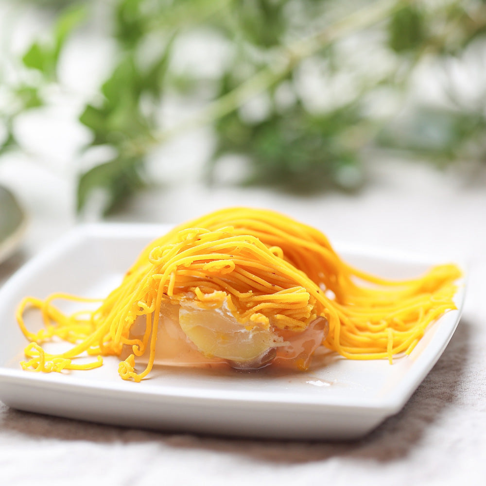 細い糸を美しく重ね合わせた、1.2mmの極細モンブランペースト。「お取り寄せモンブラン日本一」に選ばれた高級和栗モンブラン専門店「いも栗カボチャ」。