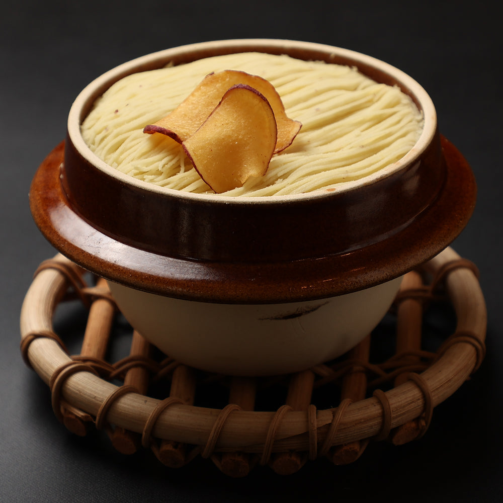この全ての層が、専用の釜で温められて提供されるため、通常のモンブランとは一線を画す、温かいデザート体験をお楽しみいただけます。