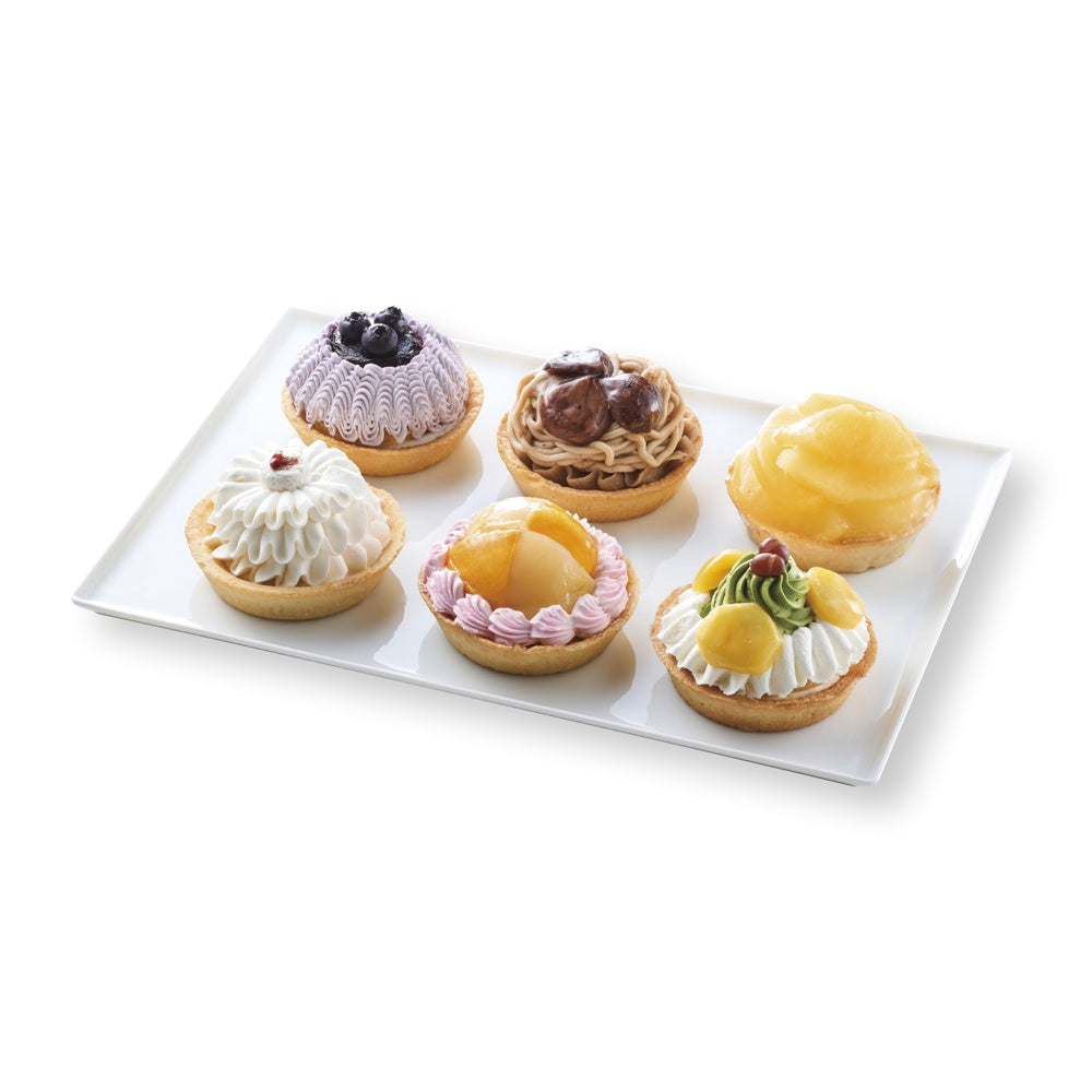 ■サクサクのタルト生地の上にフルーツ、抹茶小豆、クリームチーズ、渋皮栗等を盛り付けたバラエティ豊かな6種類の味が存分に楽しめる手軽なサイズのタルトです。
