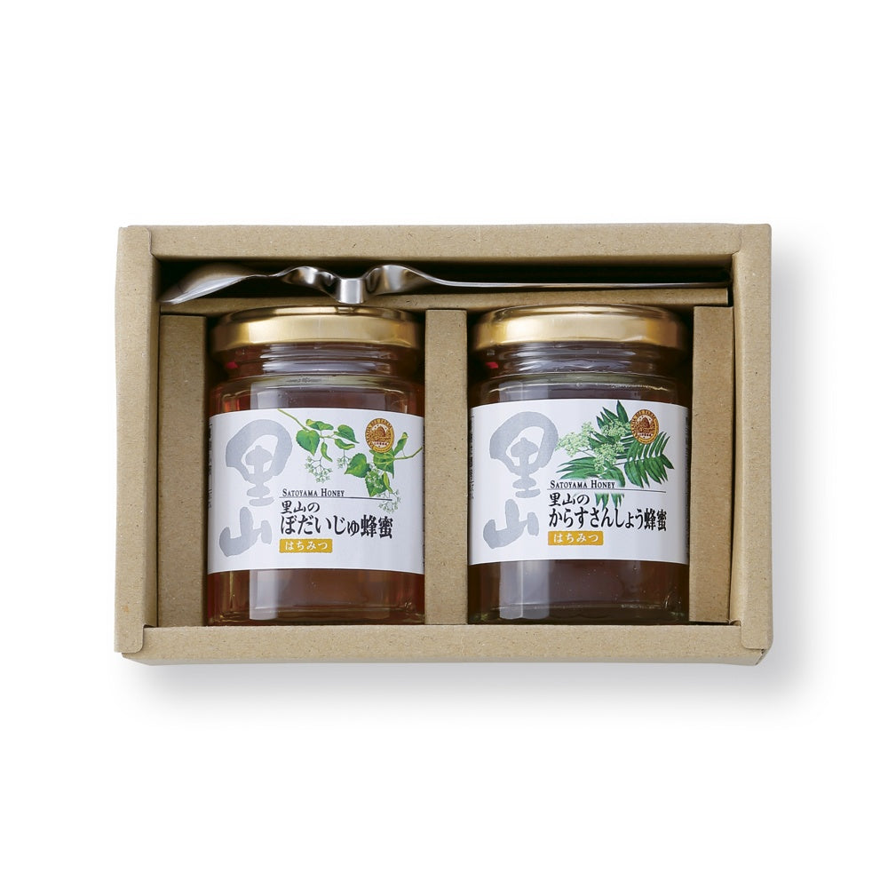 ■商品内容:里山のぼだいじゅ蜂蜜120g・里山のからすさんしょう蜂蜜120g各1・ハニースプーン