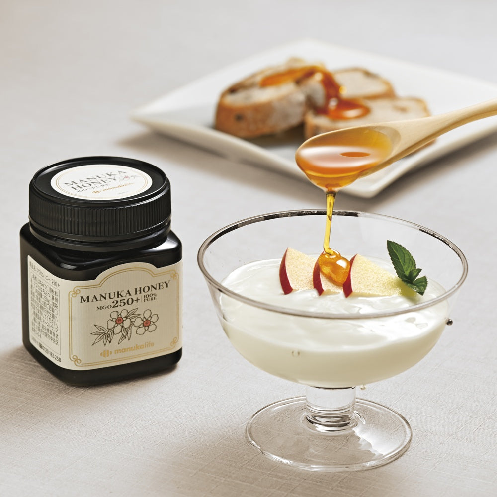 ■オーストラリアには83種類のマヌカハニーが自生しており、温暖な気候と肥沃な大地で育ったオーストラリアのハチミツは、マヌカハニー独自の薬っぽさや苦みが少なく、甘いのが特徴です。マヌカハニーに含まれるMGO(メチルグリオキサール)が抗菌成分であることが特定され、含有量によってグレードを分けています。AMHA(オーストラリアマヌカハニー協会)が2019年7月より認証制度を開始し、しっかりと検査をして、高いMGO値と認められたものだけがAMHAマークを付けることが出来るようになりました。