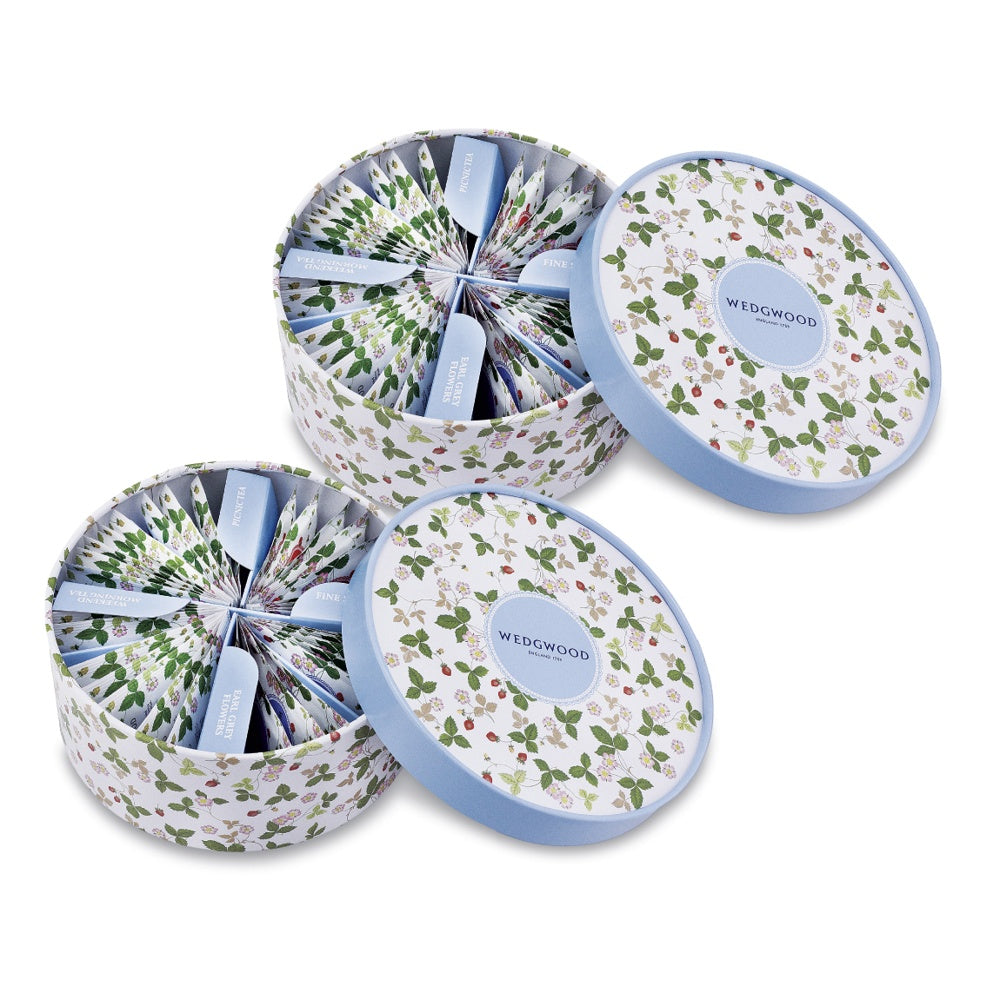■ウェッジウッドの代表柄「ワイルド ストロベリー」の可愛らしいパッケージに包まれた4種類のティーバッグアソート。ふんわりといちごが香る「ファイン ストロベリー」、しっかりとしたコクのある「ピクニック」等、紅茶を気軽に楽しめるセットはプチギフトに喜ばれるひと品です。