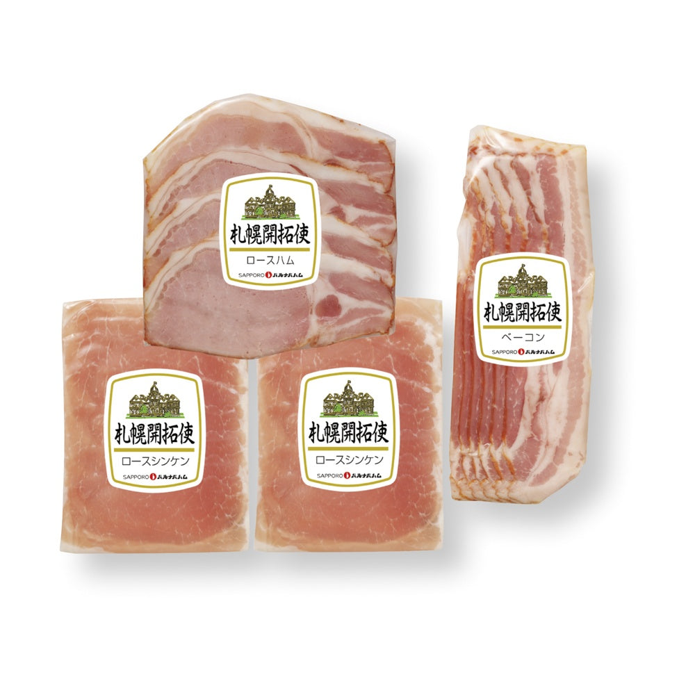 ■商品内容:ロースシンケン(生ハム)40g×2、北海道産ロースハム65g・北海道産ベーコン80g各1
