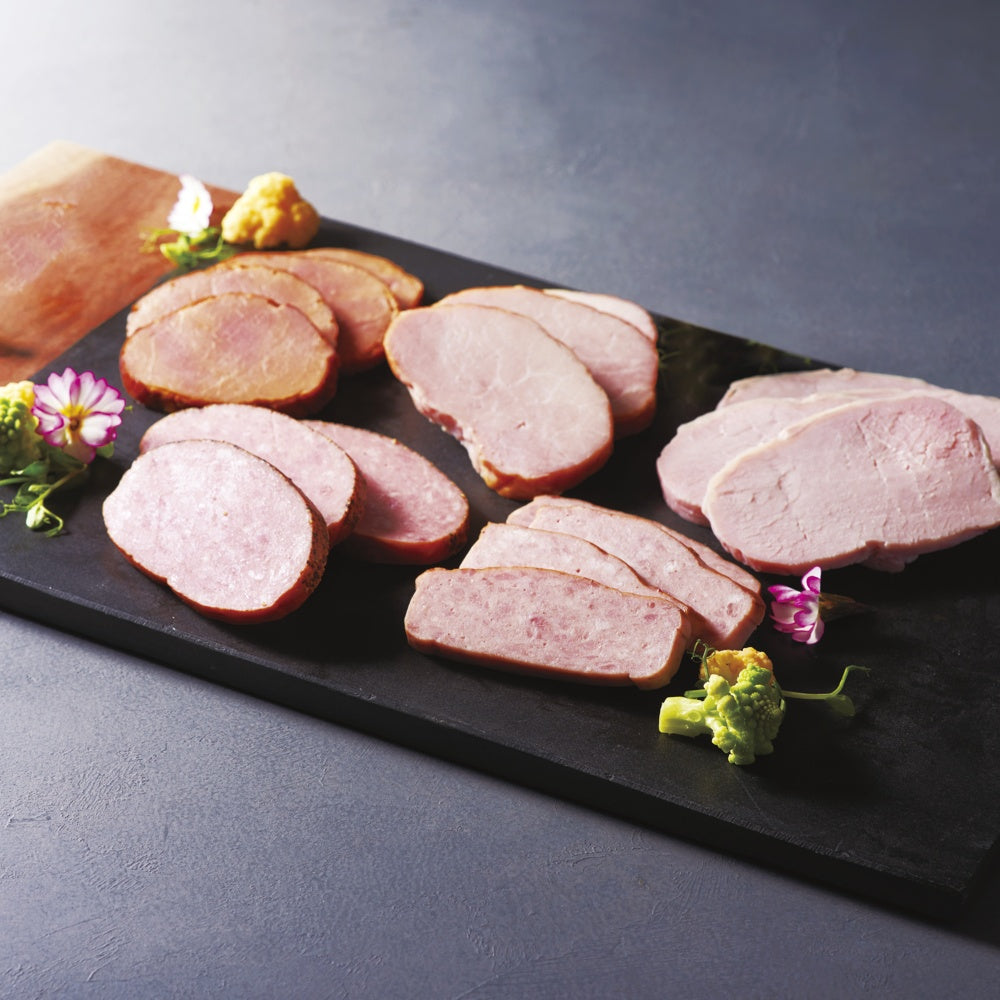■商品内容:ホワイトロースハム400g・ボンレスハム340g・焼豚300g・パストラミポーク280g・ミートローフ280g各1
