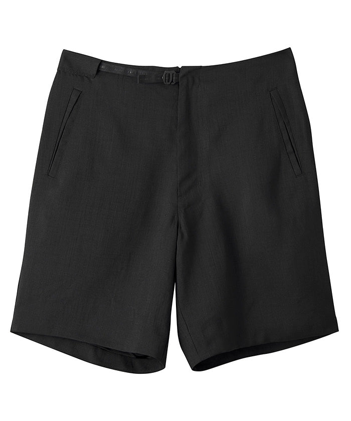 麻のようなナチュラルさとシャリ感のあるドライタッチ性を表現した麻調合繊ファブリック『SYNTHETIC LINEN DRY TOUCH WOVEN(シンセティック・リネン ドライタッチウーブン)を採用したアジャスター・バックルショーツ。