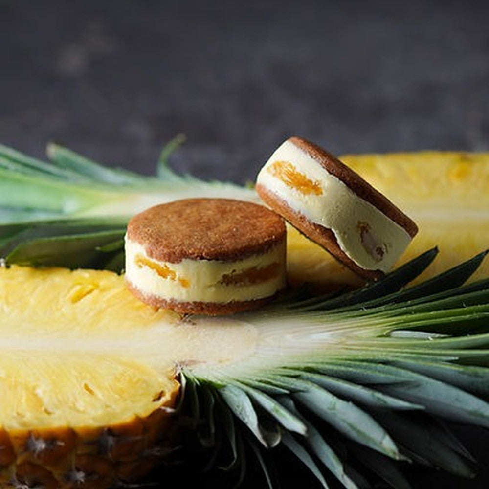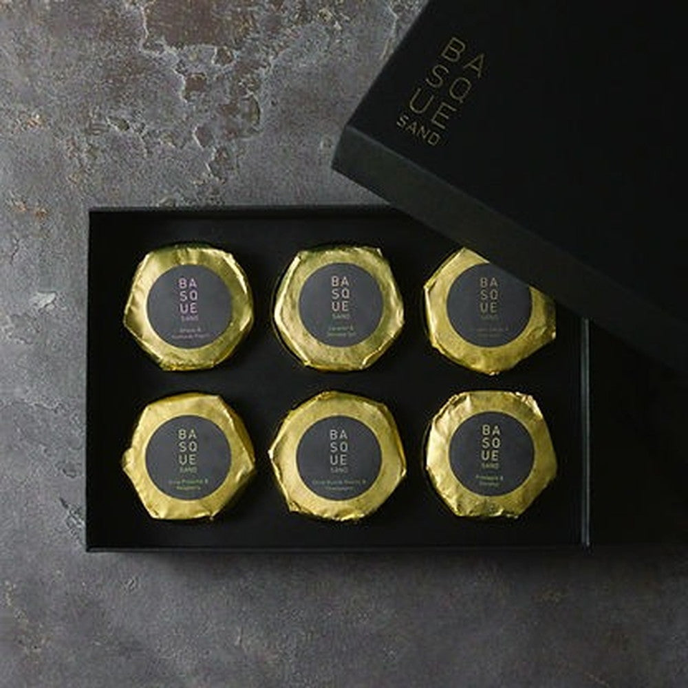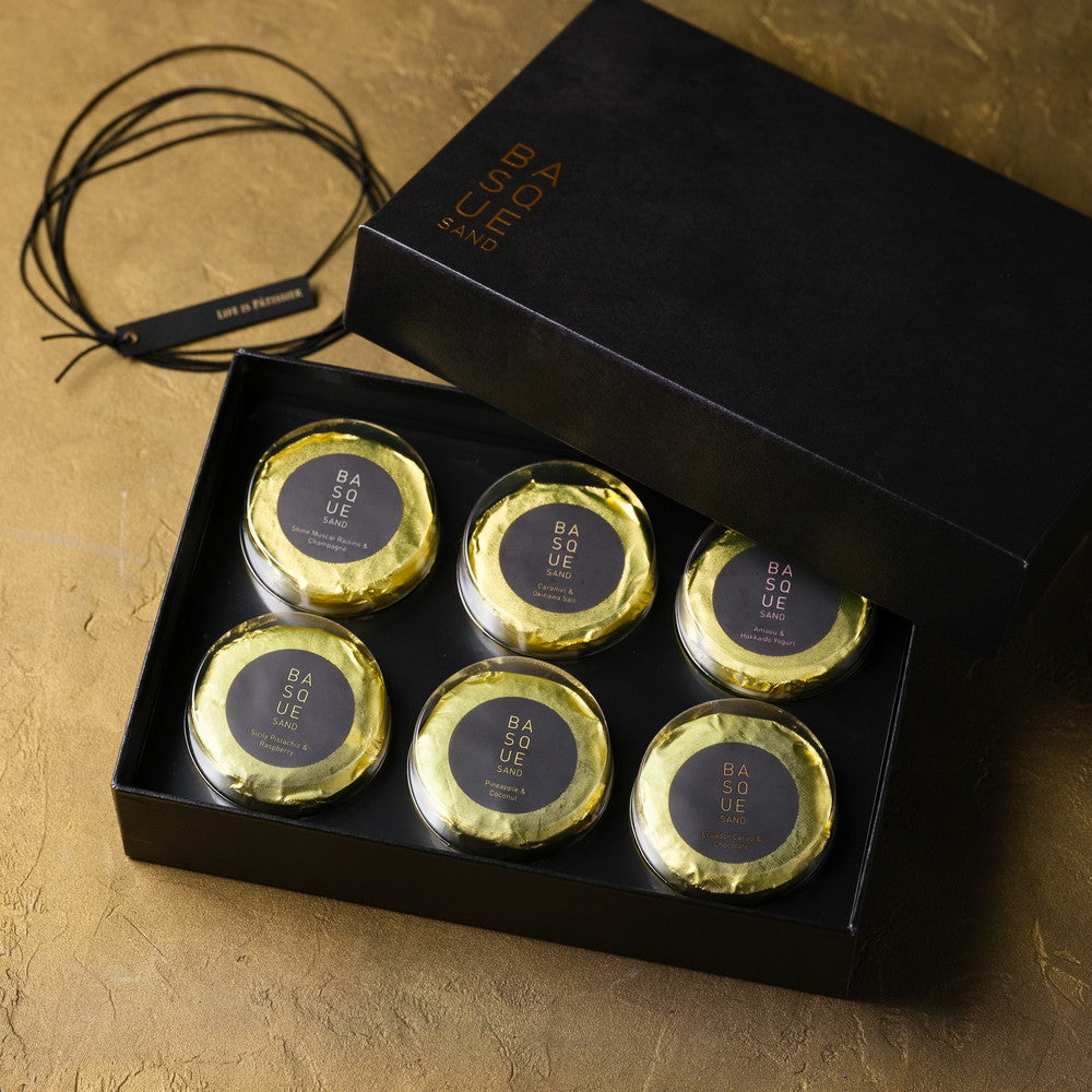 ■バスク生地を使ったオリジナルのバターサンドです。バターは北海道産の最高級バターを使用。粉はフランス産の粉を使いました。フレーバーは6種、あまおうと北海道産ヨーグルト、エクアドル産チョコレート、イタリア産ピスタチオとフランボワーズ、レーズンとマール酒、フランス産塩キャラメルとナッツ、ココナッツとパイナップル。全ての材料にこだわった最高級のバターサンドです。バスク生地にバタークリームが染み込み、1日目と2日目で味の変化が楽しめるように作りました。ぜひLIFE IS PATISSIER特製バターサンドをお楽しみ下さい。