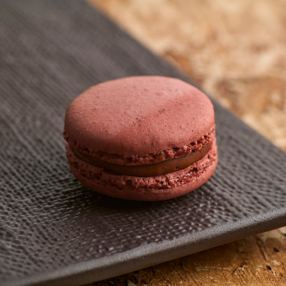 ■マカロンの生地には、濃厚かつ心地よい酸味の香りの希少な『アマゾンカカオ』のニブを砕いて練り込み味わい深く仕上げました。ガナッシュにもアマゾンカカオを使用し、アクセント“神のフルーツ”と呼ばれるカカオの仲間の白い果実で、ワイルドな香りと酸味が特長の『クアプス』を加え、よりフルーティでユニークな味わいに仕上げました。アマゾンカカオの持つ独自の風味を是非ご堪能ください。