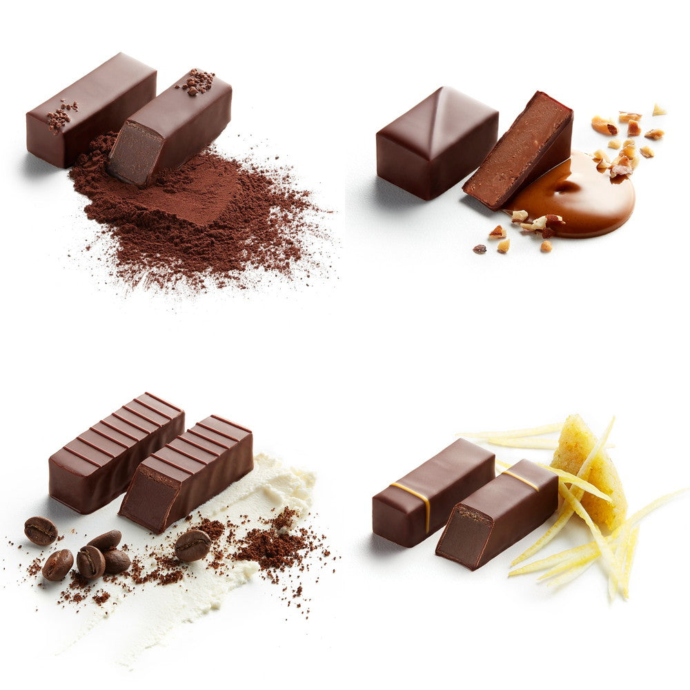 チョコレートの味わいの構造を楽しむことのできる、まさに「オートクチュール」チョコレート。ラ・メゾン・デュ・ショコラでは、プレーン ガナッシュと果実やハーブで風味をつけたフレーバーガナッシュがございます。