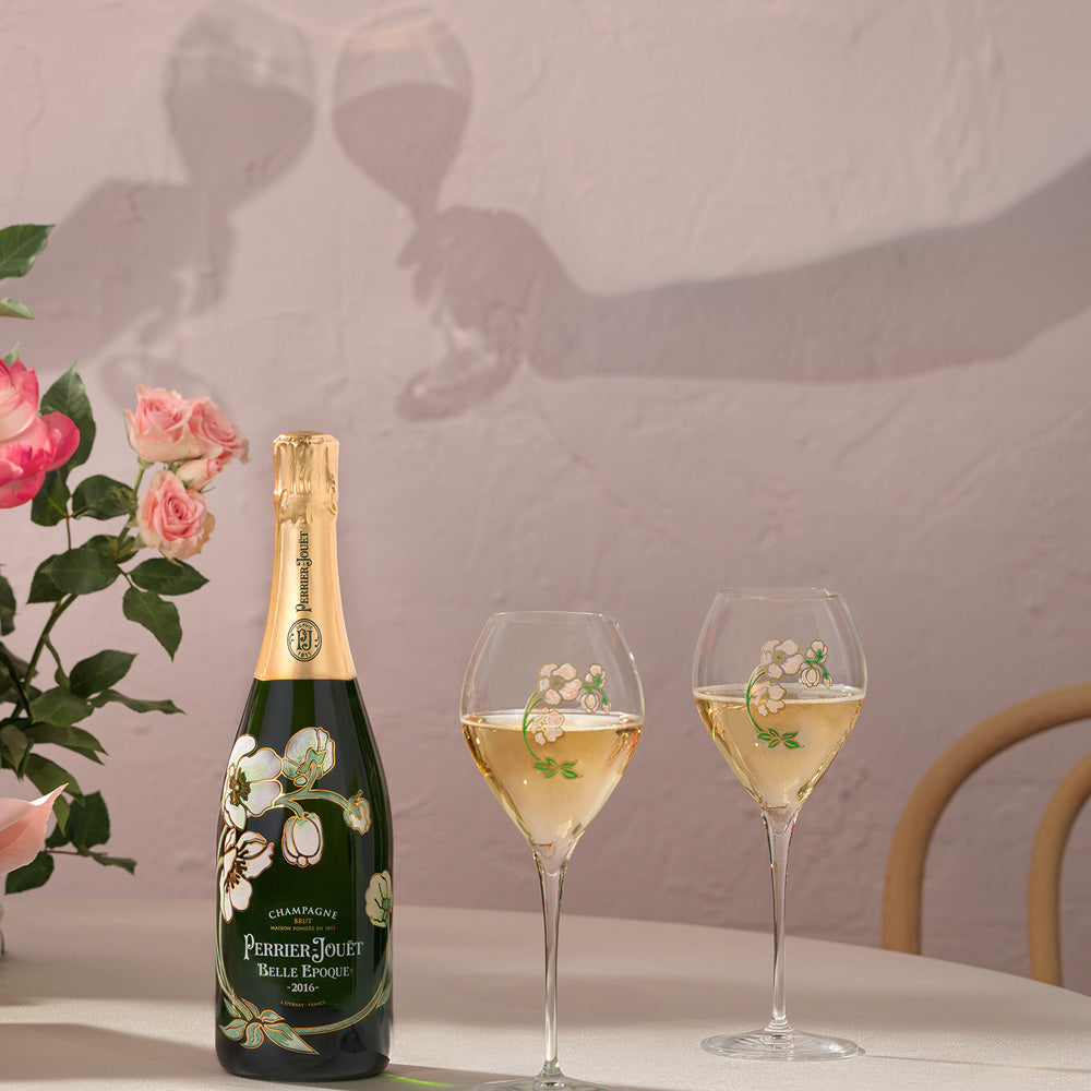 ボトルには、1902年にアール・ヌーヴォーの巨匠、エミール・ガレがメゾン ペリエ ジュエのために描いた日本の白いアネモネが優美に彩られ、世界の至る所ですぐにペリエ ジュエ ベル エポックとわかるデザインです。