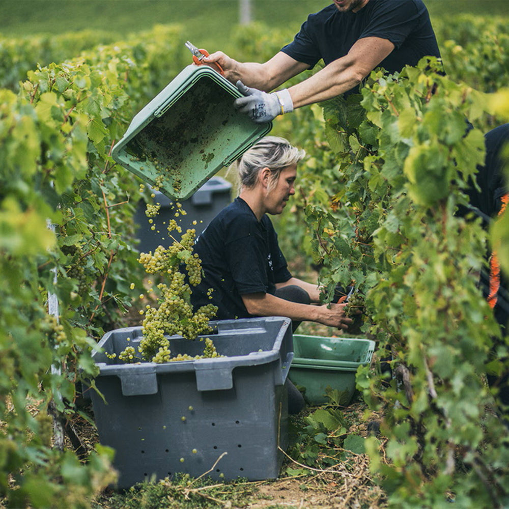 広大なブドウ畑から、良質なピノ・ノワール、ムニエ、シャルドネを選び抜き、100種類以上を越えるベースワインをブレンド(内20-30%はリザーブワインを使用)することで、熟成感と複雑さ、スタイルの一貫性を実現しています。このアッサンブラージュこそがそれぞれのブドウの個性を引き立てつつバランスのとれた味わいを生み出しているのです。