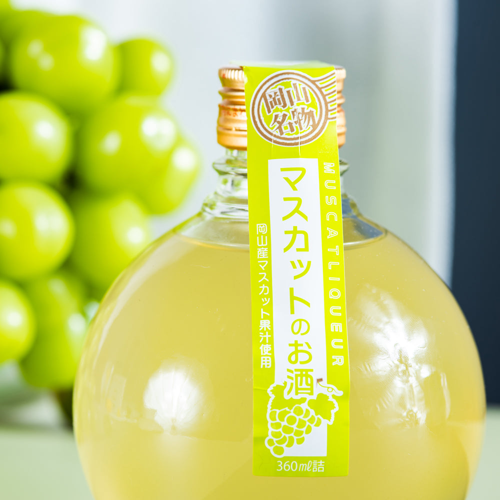 岡山産マスカット果汁をふんだんに使用した、マスカットリキュールです。ぶどうの女王「マスカット」の高貴な香りと、贅沢な甘さを味わえるお酒です。ボトルはマスカットの実を意識した丸瓶を使用し、かわいらしいデザインで女性に人気です。 岡山のお土産、バレンタイン、母の日などの贈り物にも最適です。飲み方は、冷やしてそのまま。もしくはオンザロックでお飲み下さい。